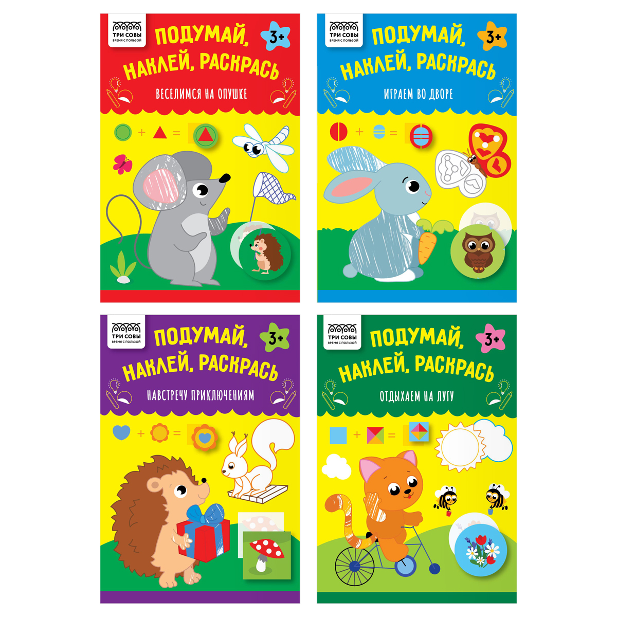 Книжка с наклейками, 175*246мм ТРИ СОВЫ "Подумай, наклей, раскрась", 16стр.