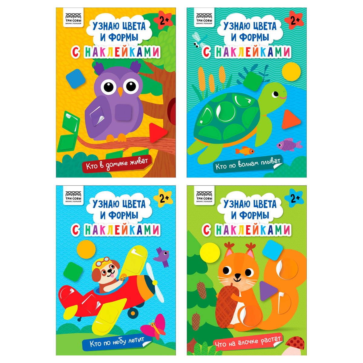 Книжка с наклейками, А5 ТРИ СОВЫ "Узнаю цвета и формы", 8стр.