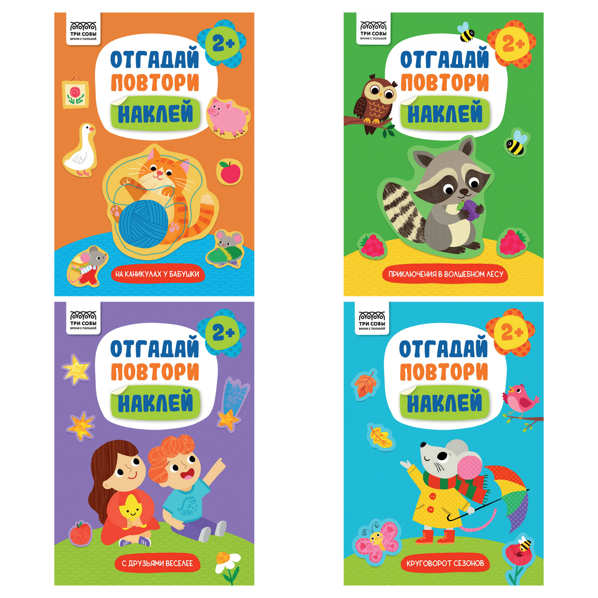 Книжка с наклейками, А5 ТРИ СОВЫ "Отгадай, повтори, наклей!", 8стр.