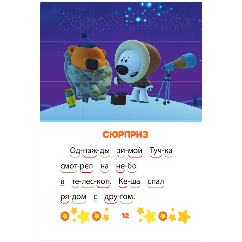 Серия "Учимся читать" предназначена для самых маленьких читателей - тех, кто только открывает чудесный мир чтения. Разбитые на части слова с выделенным красной дугой ударным слогом подходят начинающим читателям для самостоятельного чтения. Красочные иллюстрации с любимыми героями сделают книжку ещё увлекательнее.