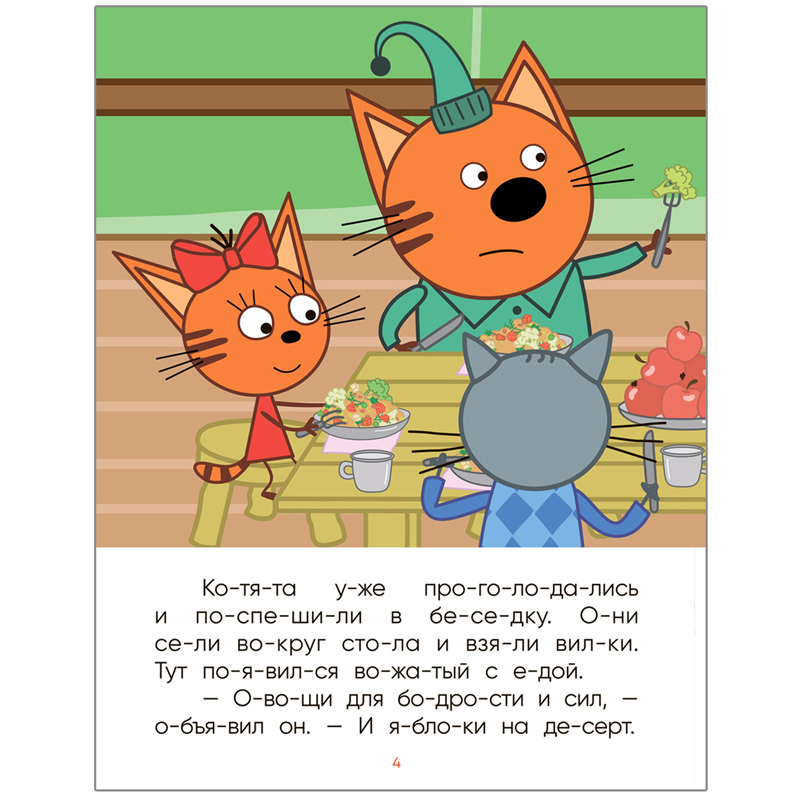 Что делать, если ребенок учится читать, а все сказки и стихи уже зачитаны до дыр? На помощь придет книга «Лесные котики» из серии «Три кота. Читаю по слогам» — история по мотивам любимого мультфильма. Слова, разделенные на фонетические слоги, крупный шрифт, понятные тексты и яркие иллюстрации — все в этой книге предусмотрено для того, чтобы читать по слогам ребенку было легко и интересно. Удобный формат книг позволит наслаждаться чтением не только дома, но и на прогулке, в пути или в очереди. Из книги «Лесные котики» ребенок узнает, как котята отправились в лесной лагерь и научились быть самостоятельными.