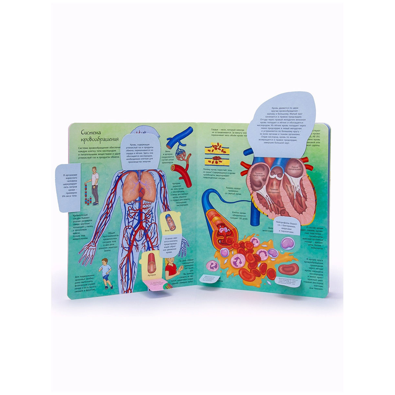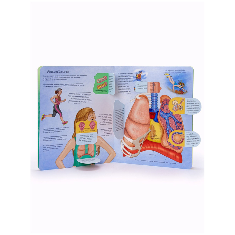 Детская интерактивная энциклопедия с бумажными окошками, понятными, красочными иллюстрациями доступно и в увлекательной форме расскажет и продемонстрирует ребёнку, как устроен человек. В каждом из 63 окошек "спрятаны" интересные факты и картинки: это уникальная возможность для ребёнка заглянуть вовнутрь процесса, предмета или явления, выступив в роли исследователя и открывателя. В энциклопедии есть информация о клетках как кирпичиках жизни, системе кровообращения, легких и дыхании, скелете и мышцах, пищеварительной и нервной системах, органах чувств и о том, как человек появляется на свет. Информация в книге преподносится короткими предложениями и небольшими текстовыми блоками, определения звучат легко и понятно. Энциклопедия имеет гладкие картонные страницы. Книга итальянского автора и художника Элеоноры Барсотти "Как устроен человек" переведена на несколько языков, в том числе, и на русский.