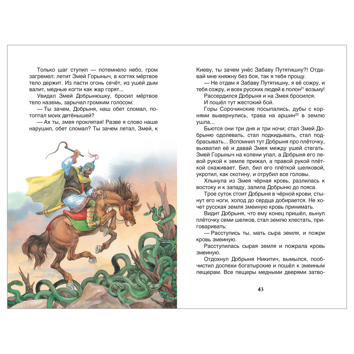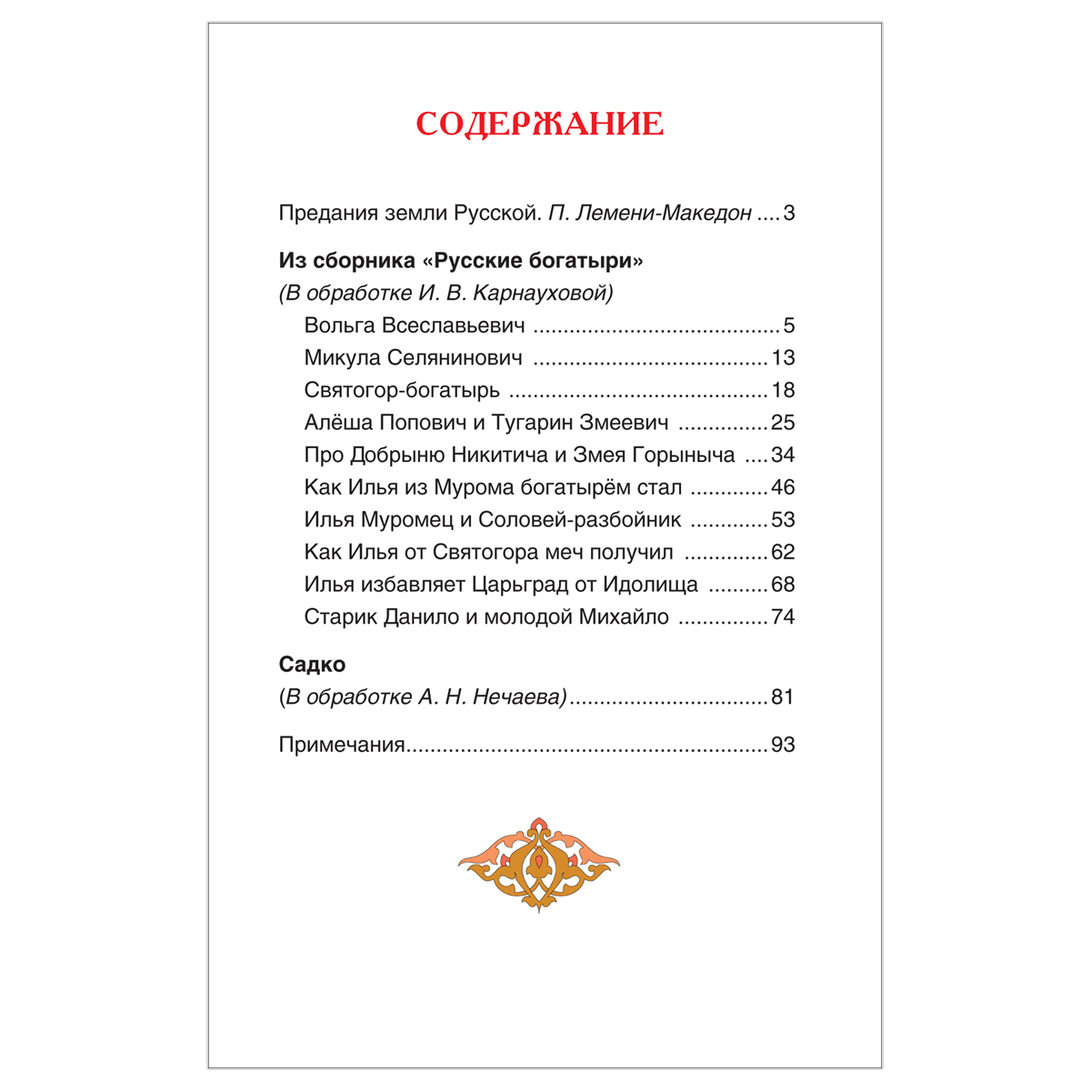 Былины — это народные сказания о славных подвигах богатырей Древней Руси. В сборник вошли былины о Вольге Всеславьевиче, Микуле Селяниновиче, Святогоре-богатыре, Алеше Поповиче, Добрыне Никитиче, Илье Муромце, Садко и др. в пересказе известных русских фольклористов И. В. Карнауховой и А. Н. Нечаева.