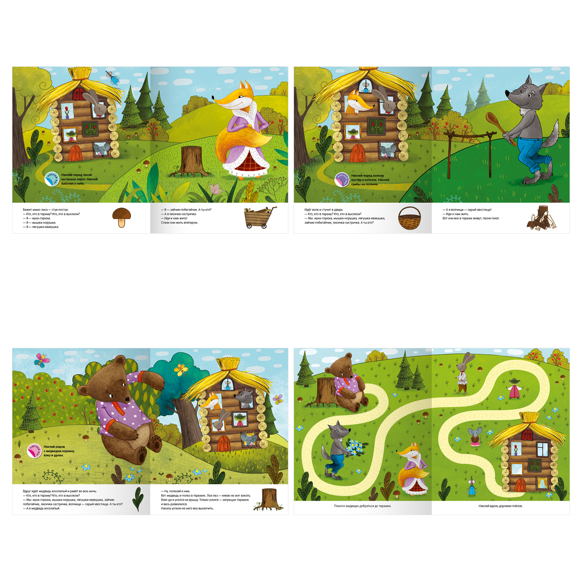 В книгах серии «Любимые сказки малышей» ребёнок встретится с героями самых любимых<br/>русских народных сказок и выполнит увлекательные задания — дополнит картинки<br/>нарядными, яркими наклейками. Малыш почувствует себя участником создания книги,<br/>помогая героям сказок очутиться на нужных страницах. Задания в книге интересны<br/>и доступны ребёнку уже в 1 год. Задания с наклейками способствуют развитию мелкой<br/>моторики, глазомера, усидч ивости, аккуратности, внимания. • Формат: А4;<br/>• Количество страниц: 12;<br/>• Материал обложки: мелованная бумага;<br/>• Крепление: скрепка;<br/>• Возраст: от 1 года.