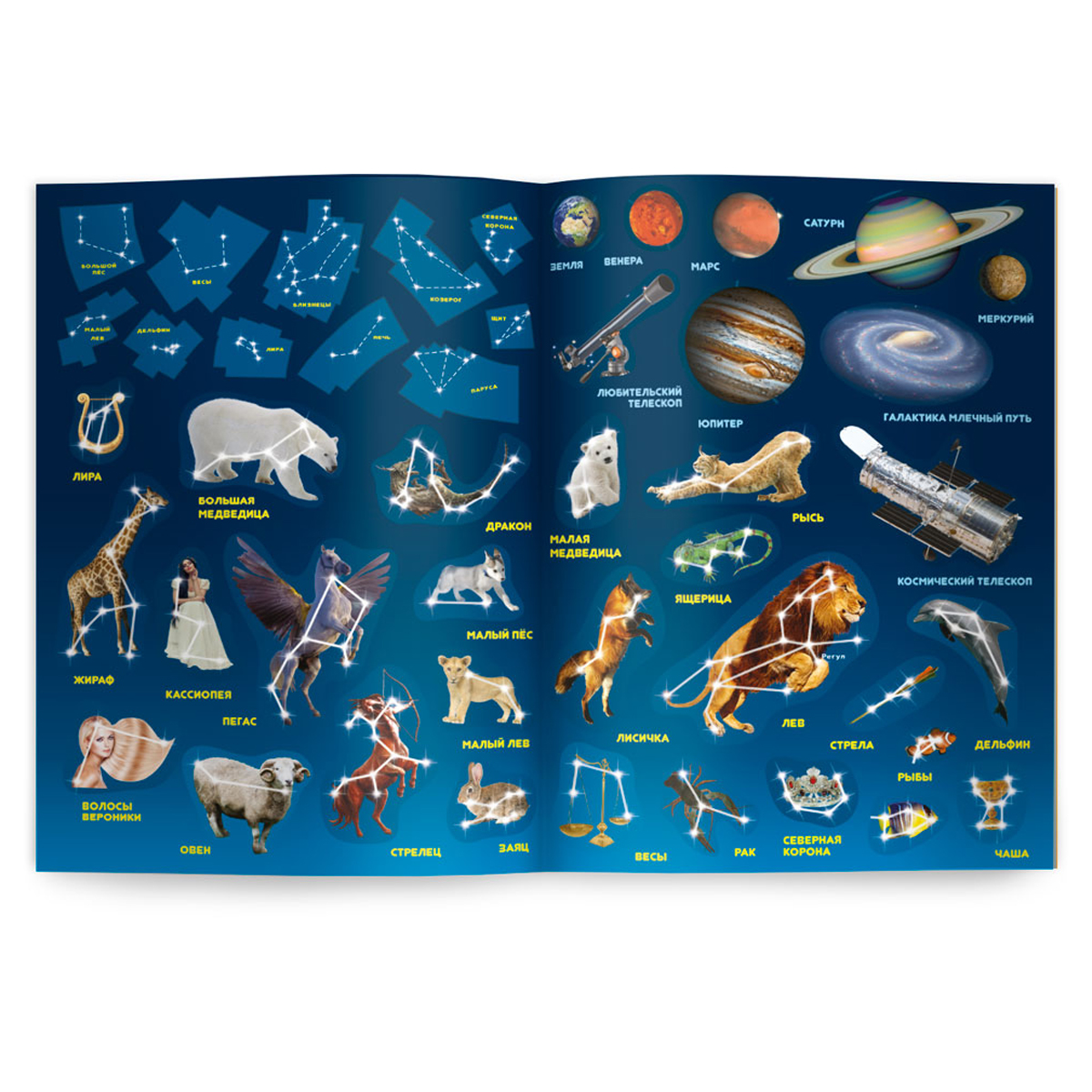 Детский атлас с наклейками "звездное небо" знакомит Вашего малыша с Солнечной системой, способами наблюдения за космосом и более подробно - с созвездиями ночного неба. Здесь созвездия отражены сказочными героями или животными, описаны самые интересные легенды - почему они названы именно так. В процессе интересной игры ребенок может изучить загадочный мир звезд.