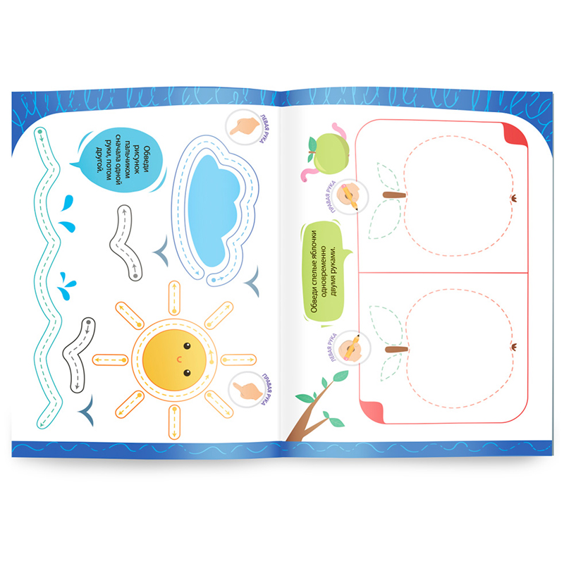 Серия «Нейропрописи» – это две ступени увлекательных заданий для развития межполушарного взаимодействия. Рисование двумя руками – по очереди и одновременно – не так трудно, как кажется: задания даны по принципу от простого к сложному. Сначала рисуем пальчиками, только потом карандашами. Выполнение несложных упражнений помогает развивать мышление и речь, координацию и моторику. Обводи, раскрашивай, рисуй – это весело и интересно! Рекомендованный возраст: 6+.