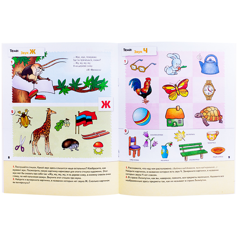 Уроки грамоты для малышей. Средняя группа. 4+.На этом этапе обучения малыши продолжают знакомиться со звуками, узнают, что они могут рычать, жужжать, шипеть.Каждый звук важен для значения слова в целом.Стоит изменить один звук, и смысл слова меняется.Выполнив предложенные в рабочей тетради упражнения, дети сами смогут в этом убедиться.