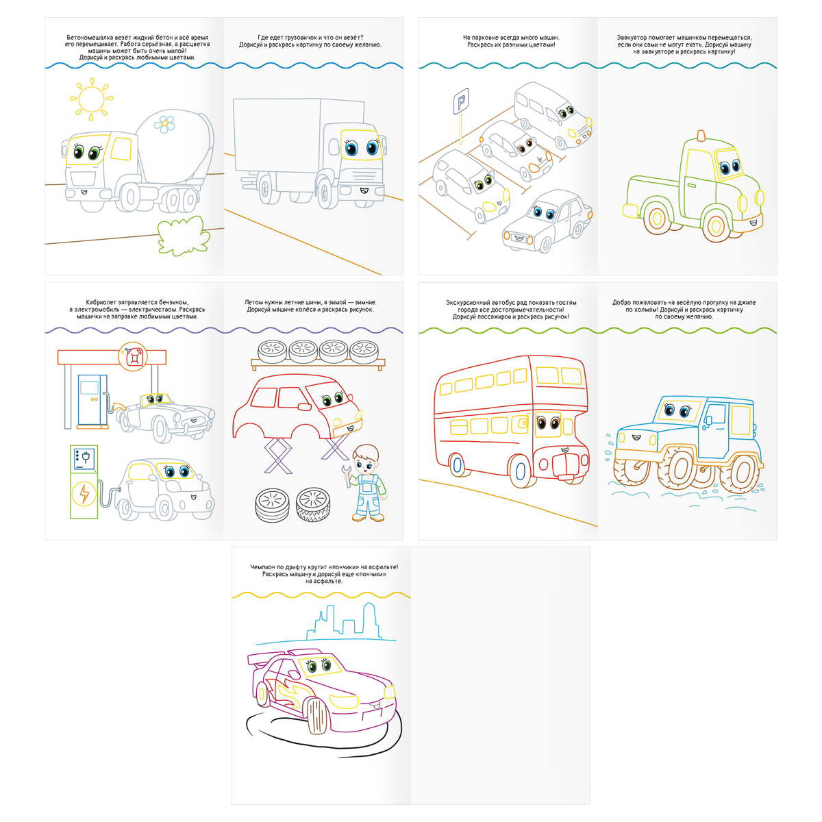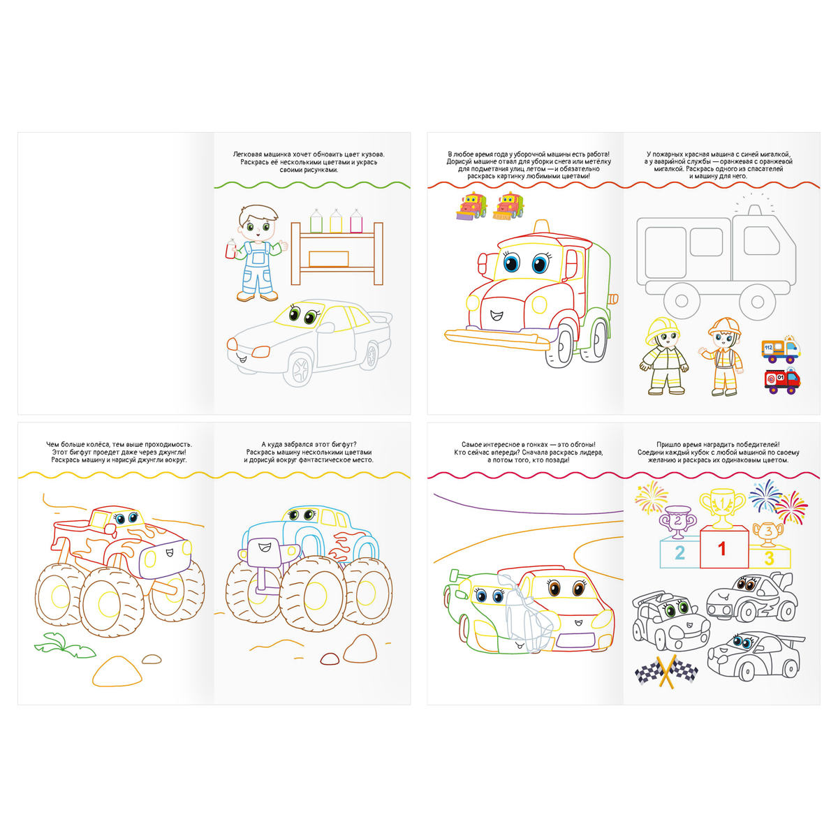 Раскраска А5, 10 стр. ТРИ СОВЫ "Автомобили", горизонтальные