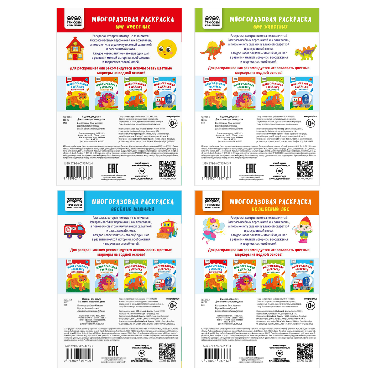 Многоразовая раскраска А4, 16 стр., ТРИ СОВЫ "Пиши-стирай"
