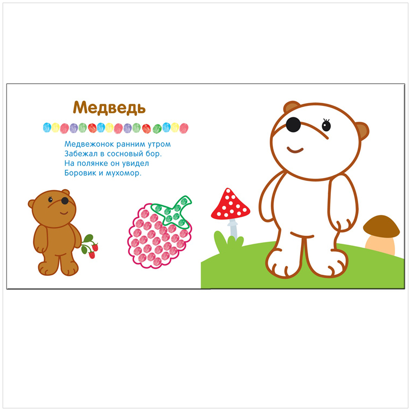 Пальчиковое рисование доступно малышу уже в 1 год. Оно великолепно развивает мелкую моторику, координацию движений, речь, фантазию, интеллект и творческие способности. Рисуя, ребенок знакомится с цветами и учится различать их.<br/>Задания в раскраске не требуют больших усилий и соответствуют возможностям ребенка, в итоге получается интересный и значимый результат – картинка, которую можно повесить на стену или показать близким.<br/>Красочные крупные иллюстрации, простые знакомые сюжеты и веселые стихи познакомят малыша с веселой белочкой, хитрой лисичкой и другими обитателями леса.
