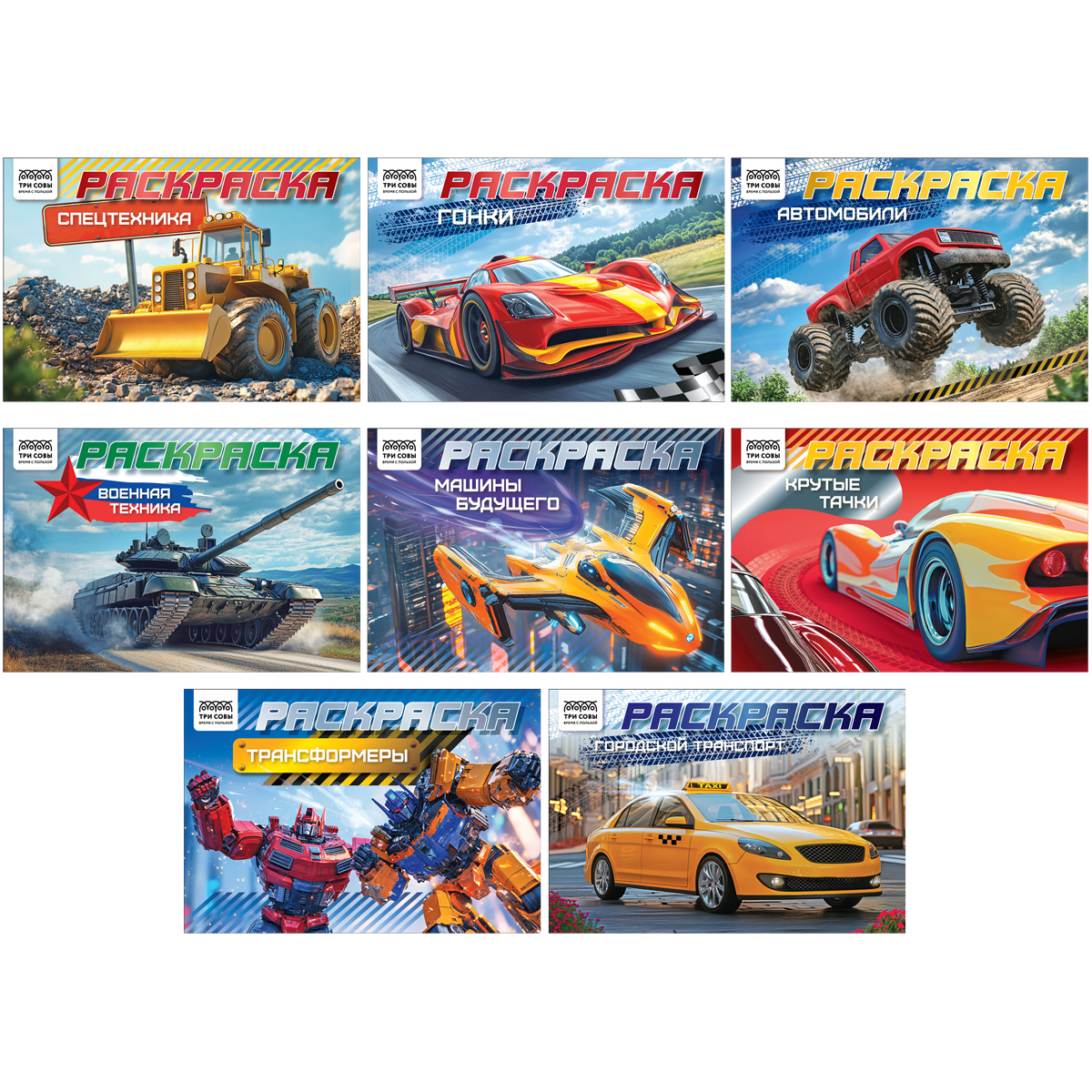 Раскраска А5, 10 стр. ТРИ СОВЫ "Автомобили", горизонтальные