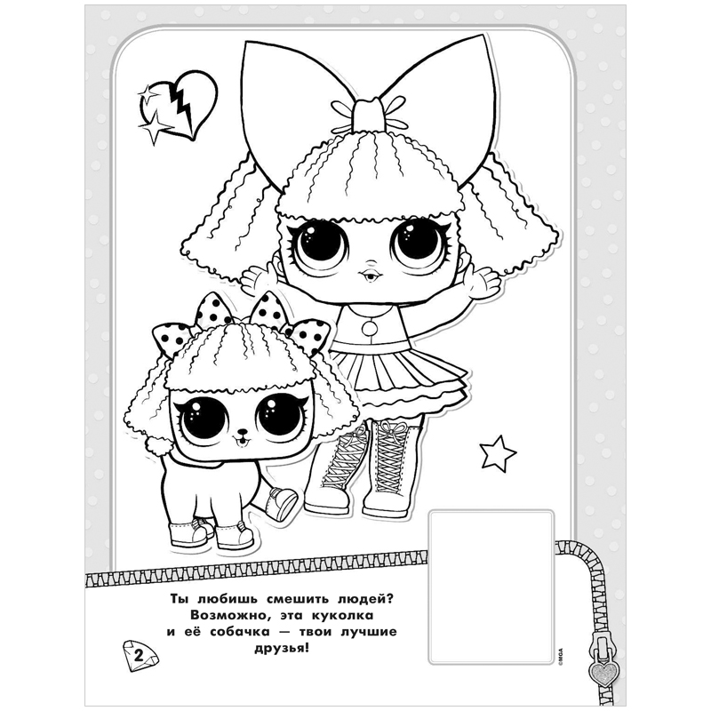 Хватай свои самые любимые и яркие карандаши и раскрась куколок L.O.L.! За образец можешь взять наклейки — на каждой странице ты найдешь место, чтобы приклеить изображения с яркими модницами.