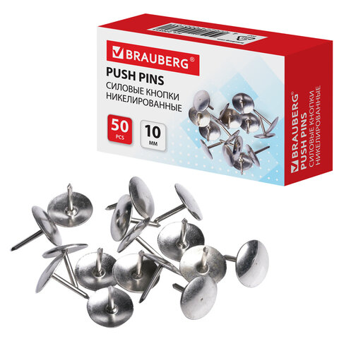 Кнопки канцелярские BRAUBERG используются для крепления бумаги на пробковые и фетровые доски, а также на другие поверхности.
