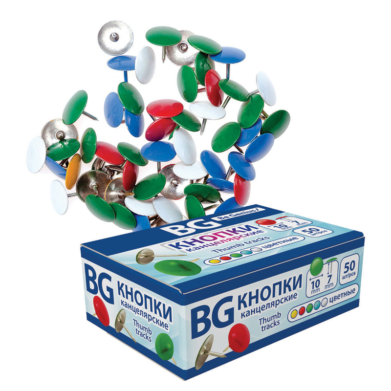 Силовые кнопки-гвоздики BRAUBERG PASTEL, пастельные цвета, 50 штук, 10мм, 272758