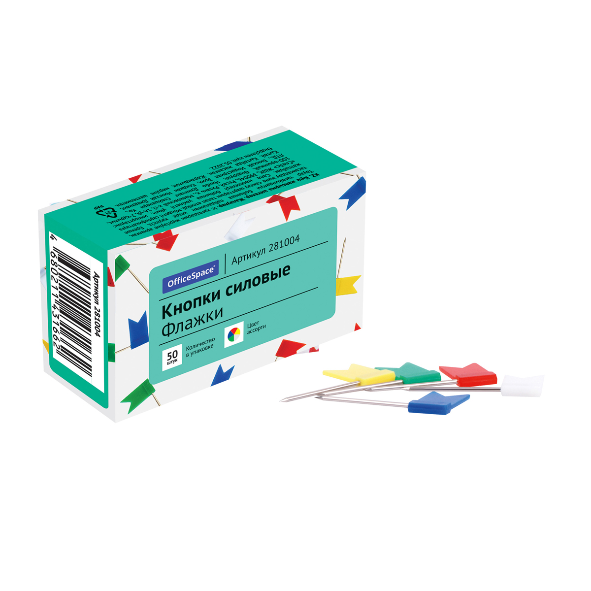 Кнопки силовые/флажки OfficeSpace, 50шт., ассорти, карт. упаковка