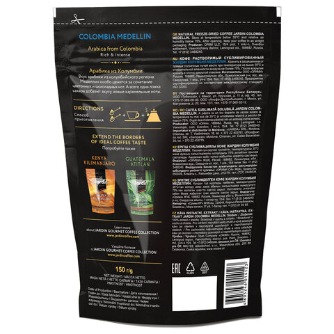 Самый глубокий и насыщенный вкус в линейке растворимого сублимированного кофе Jardin, отличается интенсивным ароматом и легкой шоколадной горчинкой, свойственной колумбийской арабике.