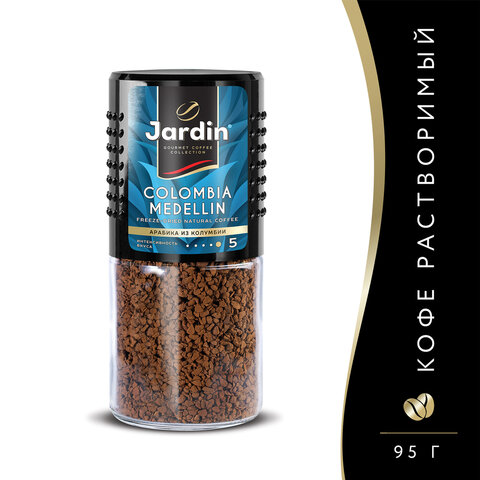Jardin Colombia Medellin - самый крепкий и насыщенный вкус в линейке растворимого сублимированного кофе Jardin, отличается интенсивным ароматом и легкой шоколадной горчинкой, свойственной колумбийской арабике.