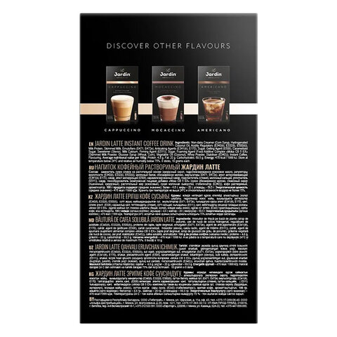 Нежный микс молока, обжаренных кофейных зерен и легкое ванильное послевкусие. JARDIN "3 в 1 Латте" — удовольствие, которое хочется выпить до капли!