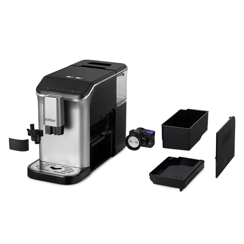 Автоматическая кофемашина КТ-7166 - отличный выбор для гурманов, которые не желают тратить много времени и сил, чтобы насладиться вкусом свежего кофе. Кофемашина готовит ароматный кофе из зёрен и молочную пенку одним нажатием кнопки.