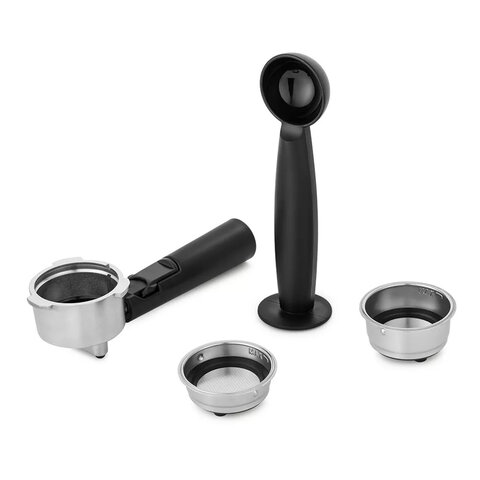 В комплекте идет ложка-темпер, которая не только помогает отмерить нужное количество кофе, но и идеально утрамбовать его для равномерного приготовления.