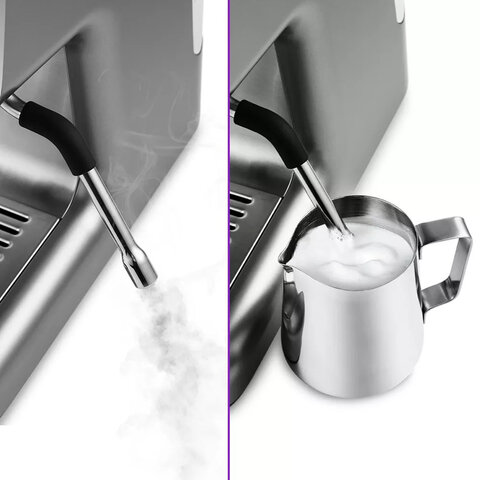 Капучинатор с паровой трубкой и насадкой панарелло позволяет легко взбивать молочную пенку для капучино или латте, а также подогревать остывший чай или молоко. В комплекте идет металлический питчер с удобной ручкой и носиком, который идеально подходит для создания молочной пены и художественного оформления напитков.