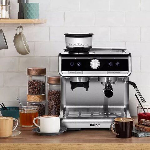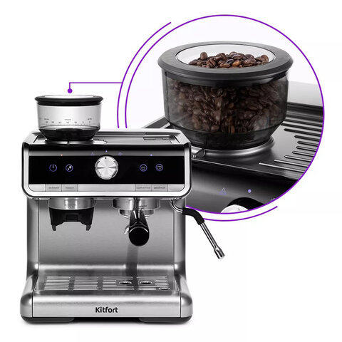 Кофейная станция KITFORT КТ-7413, 2250Вт, объем 2,6л, для зерен 220г, ручной капучина