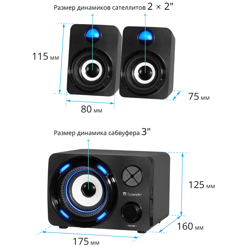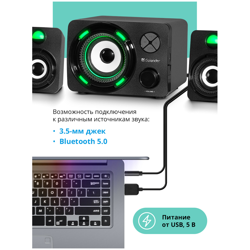 Колонки компьютерные DEFENDER Spitfire, 2.0, 6 Вт, bluetooth, питание от USB, 65047