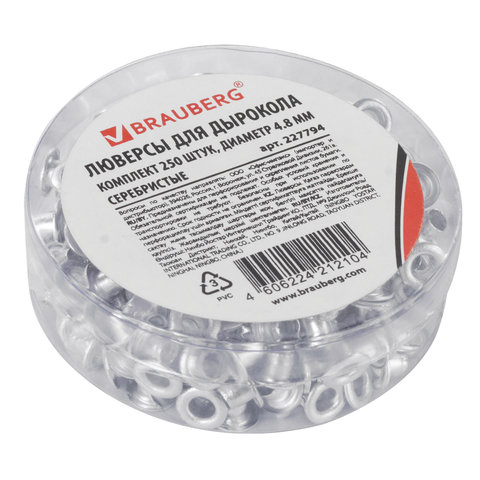 Люверсы BRAUBERG предназначены для защиты отверстий от механического повреждения (разрыва, износа) при сшивании бумаги, картона, баннерной ткани. Крепятся с помощью дырокола. Также подходят для скрапбукинга.