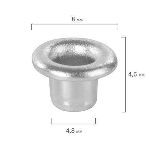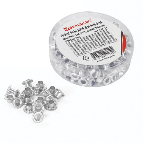 Люверсы серебристые КОМПЛЕКТ 250 шт., внутренний диаметр 4,8 мм, длина 4,6 мм, BRAUBERG, 272765