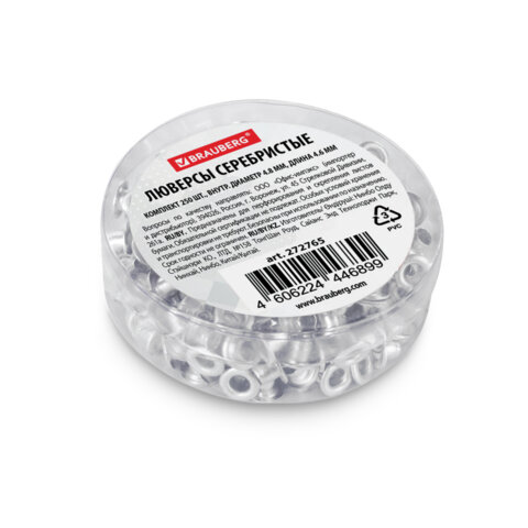 Люверсы BRAUBERG предназначены для защиты отверстий от механического повреждения (разрыва, износа) при сшивании бумаги, картона, баннерной ткани. Крепятся с помощью дырокола. Также подходят для скрапбукинга.