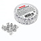 Изготовлены из металла серебристого цвета. Длина - 4,6 мм, внутренний диаметр 4,8 мм. 250 штук в комплекте. Поставляются в пластиковом цилиндре.