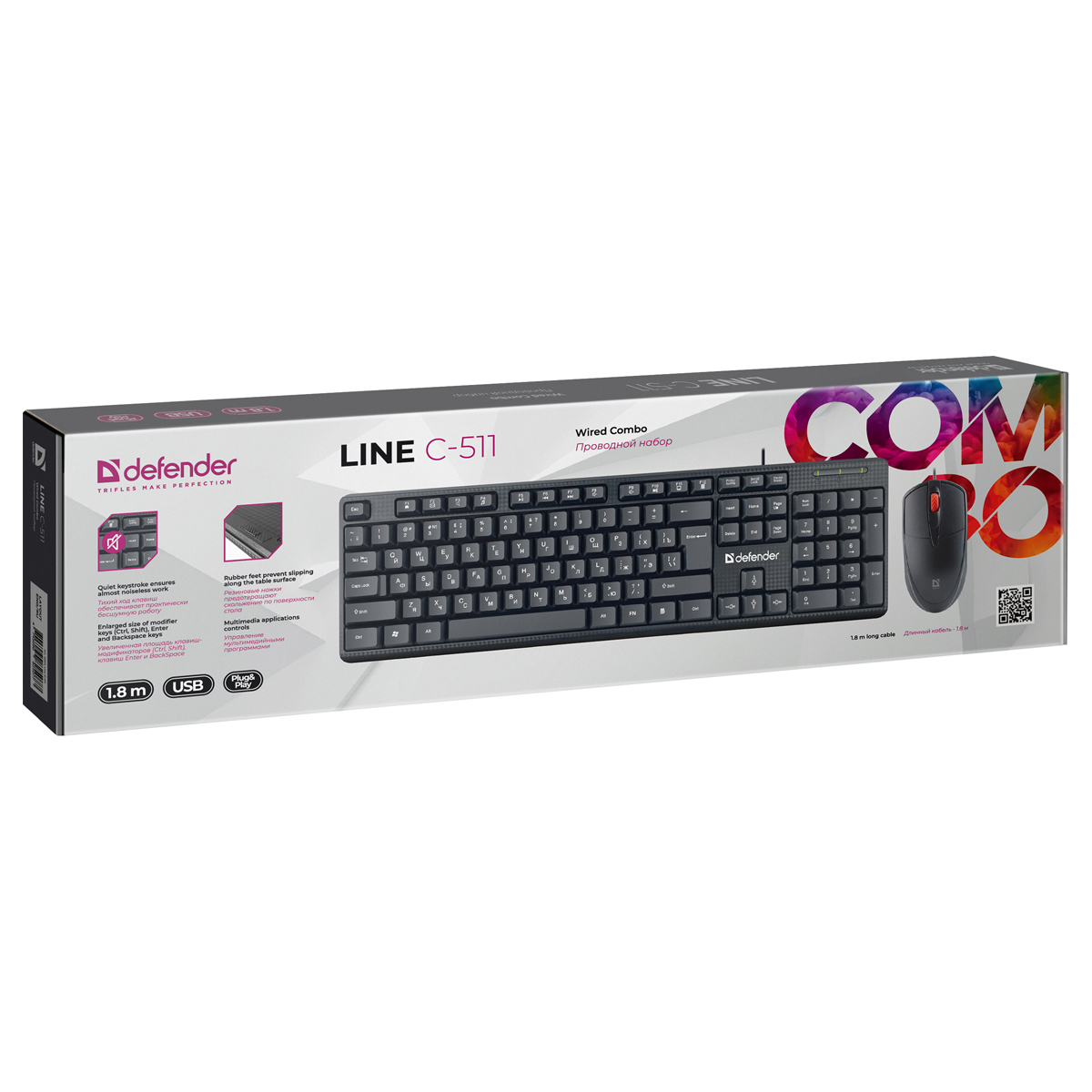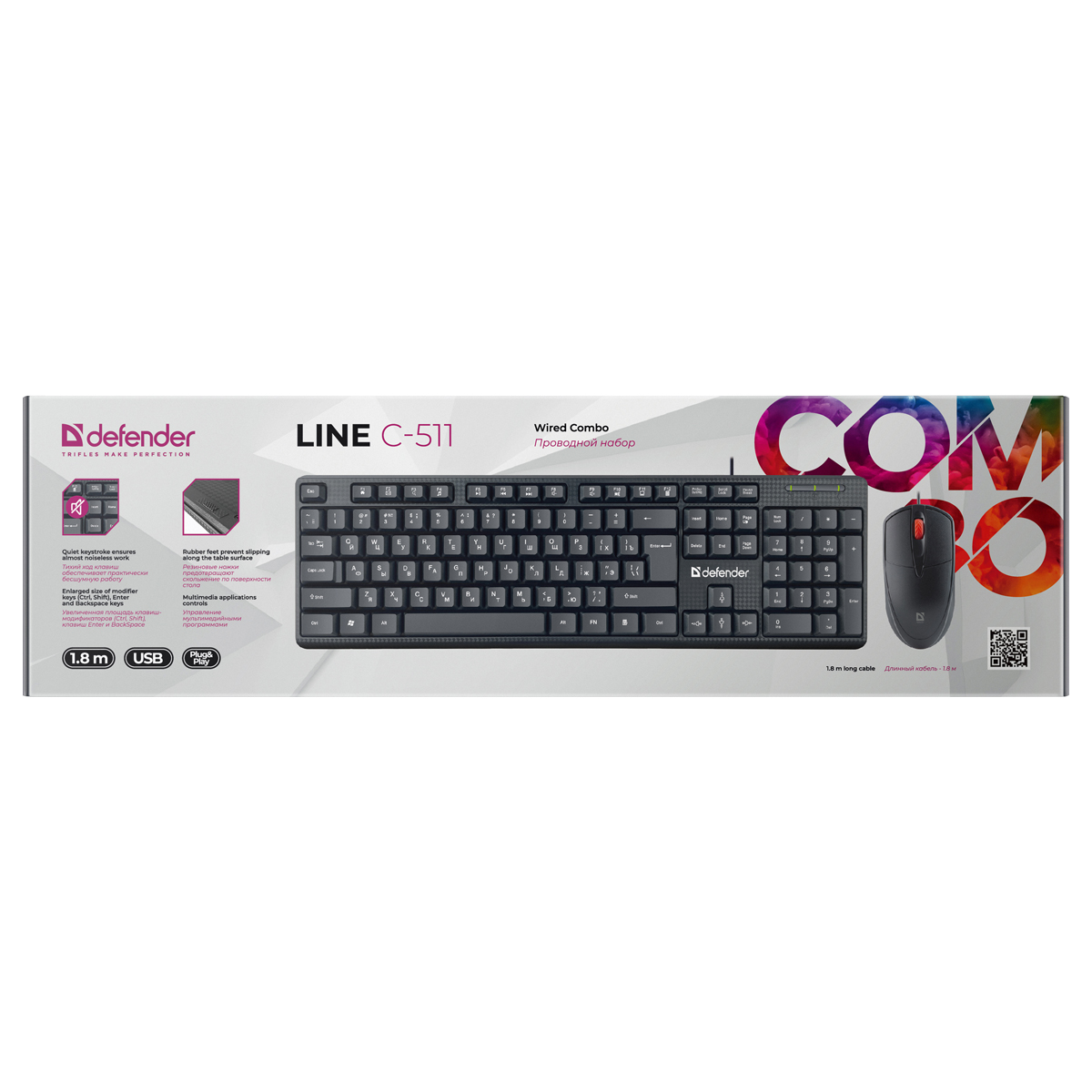 Набор беспроводной DEFENDER Milan C-992 RU, клавиатура, мышь 2 кнопки+1 колесо-кнопка, черный, 45992