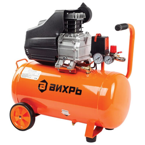 Компрессор ВИХРЬ КМП-300/50, 2000 Вт, рабочее давление 8 бар, объем 50 л, 300 л/мин, 2,7 л.с., 74/3/4