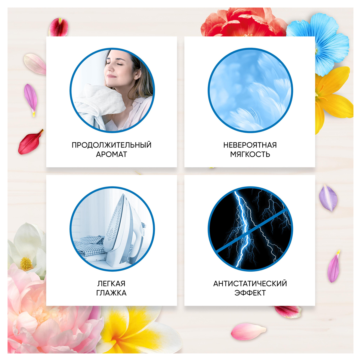 - Кондиционер для стирки облегчает глажку и обладает антистатическим эффектом.