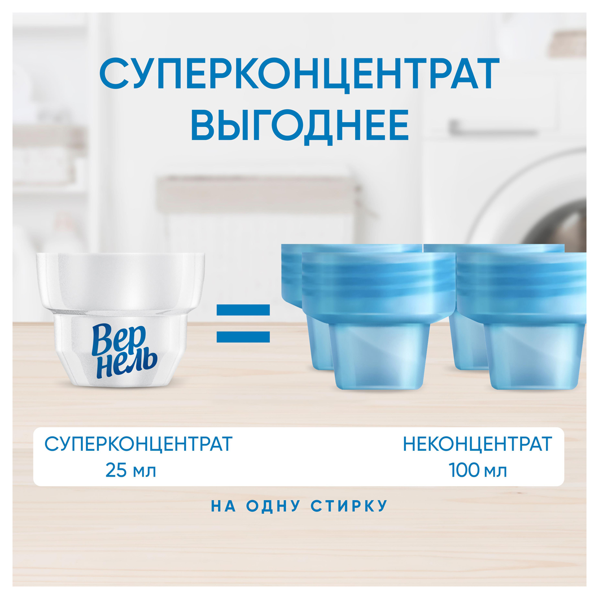 - Средство Вернель имеет концентрированную формулу, обеспечивающую мягкость и свежесть белью.