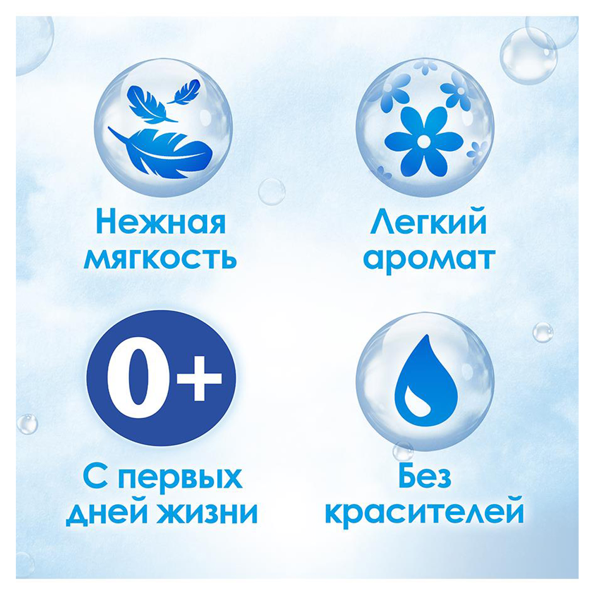 - Средство для ополаскивания детских вещей дарит белью свежесть и приятный аромат, который сохраняется длительное время.