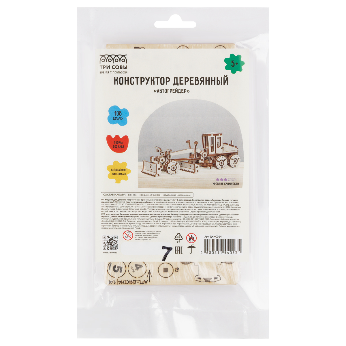 Конструктор «ТРИ СОВЫ» – экологически чистый и качественный товар. Наборы будут интересны не только малышам, но и взрослым. Размер готового изделия (мм): 155*50*55. Количество деталей: 108. Конструктивные особенности: у собранной модели вращаются колеса, поднимается ковш. Конструктор способствует развитию мелкой моторики и предметному моделированию, а также воображению, пространственному мышлению и логики. Вы приятно проведёте время за сборкой, а готовая модель послужит не только игрушкой, но и стильным украшением интерьера!<br/> «ТРИ СОВЫ» – время с пользой!<br/> • Количество деталей: 108;<br/> • Возраст: от 5 лет;<br/> • Материал: дерево.