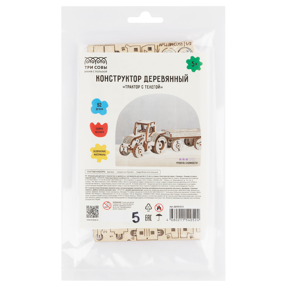 Деревянный конструктор «ТРИ СОВЫ» – экологически чистый и качественный товар. Наборы будут интересны не только малышам, но и взрослым. Размер готового изделия (мм): 145*45*50. Количество деталей: 92. Конструктивные особенности: у собранной модели вращаются колеса, прикрепляется телега. Конструктор способствует развитию мелкой моторики и предметному моделированию, а также воображению, пространственному мышлению и логики. Вы приятно проведёте время за сборкой, а готовая модель послужит не только игрушкой, но и стильным украшением интерьера!<br/> <br/> «ТРИ СОВЫ» – время с пользой!<br/> • Количество деталей: 92;<br/> • Возраст: от 5 лет;<br/> • Материал: дерево.