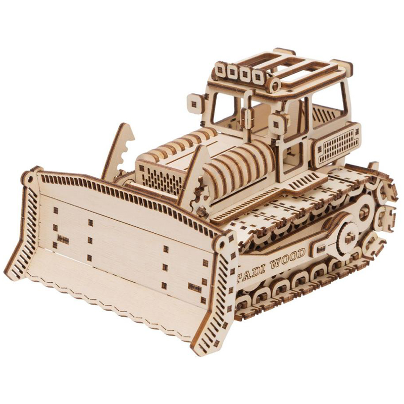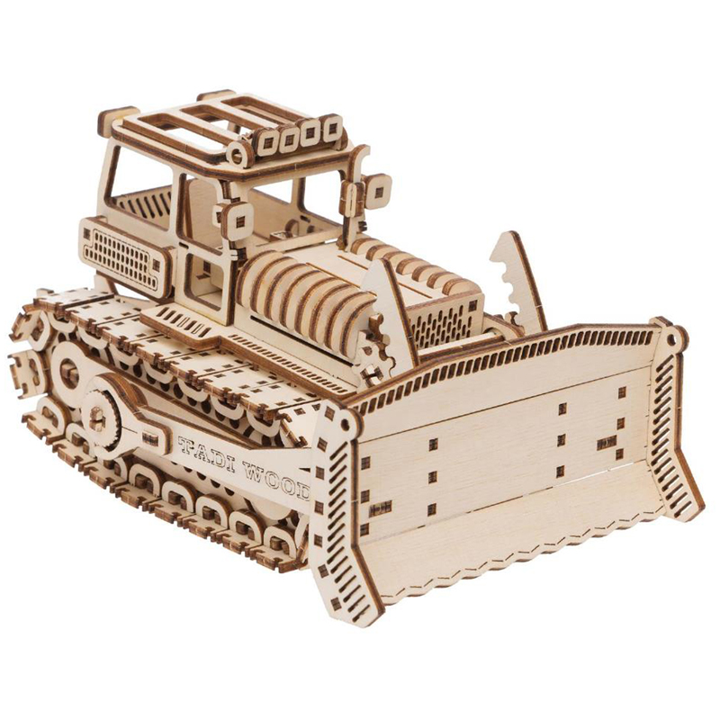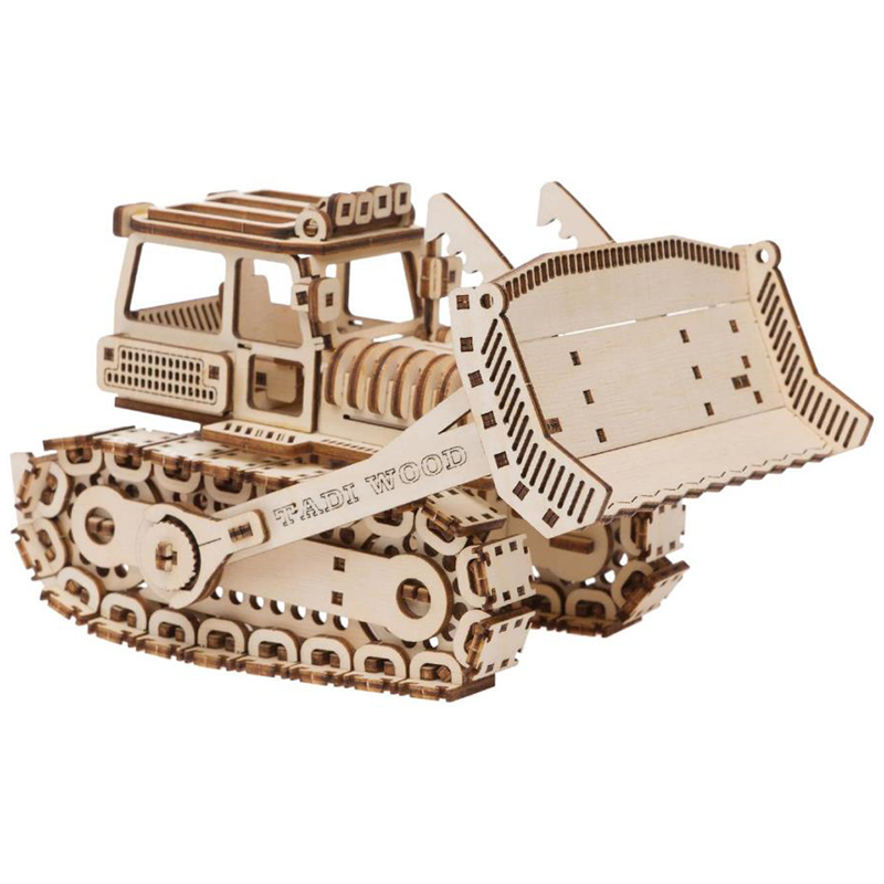 Конструктор 3D деревянный, подвижный "Бульдозер" бежевого цвета марки TADIWOOD.<br/>Конструктор из дерева или как его еще называют 3D конструктор или 3D пазл, собирается полностью без клея и специального инструмента. Все элементы легко и прочно соединяются друг с другом. Конструктор можно раскрасить любыми красками, фломастерами или карандашами, проявив при этом свой дизайнерский потенциал. <br/>Конструктор выполнен из высококачественной березовой фанеры 1 сорта. Насыщенный запах дерева добавляет приятных эмоций во время сборки.<br/> В комплект входит: все необходимые детали конструктора, подробная инструкция для сборки.<br/> У собранной модели Бульдозера вращаются гусеницы, открывается люк в салон, ковш двигается. Машина ездит по любой поверхности.<br/>Сборка модели порадует не только детей, но и взрослых любителей моделизма.<br/>Конструкторы от TADIWOOD помимо развлекающей функции имеют развивающую функцию - это отличная тренировка усидчивости, внимательности, а также развитие глазомера, мелкой моторики рук, пространственного и логического мышления.