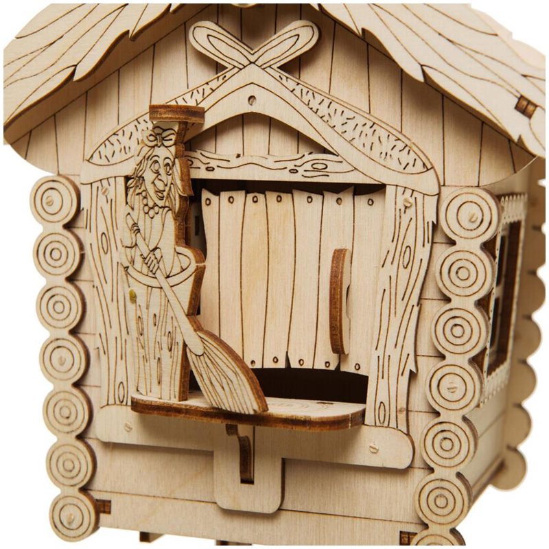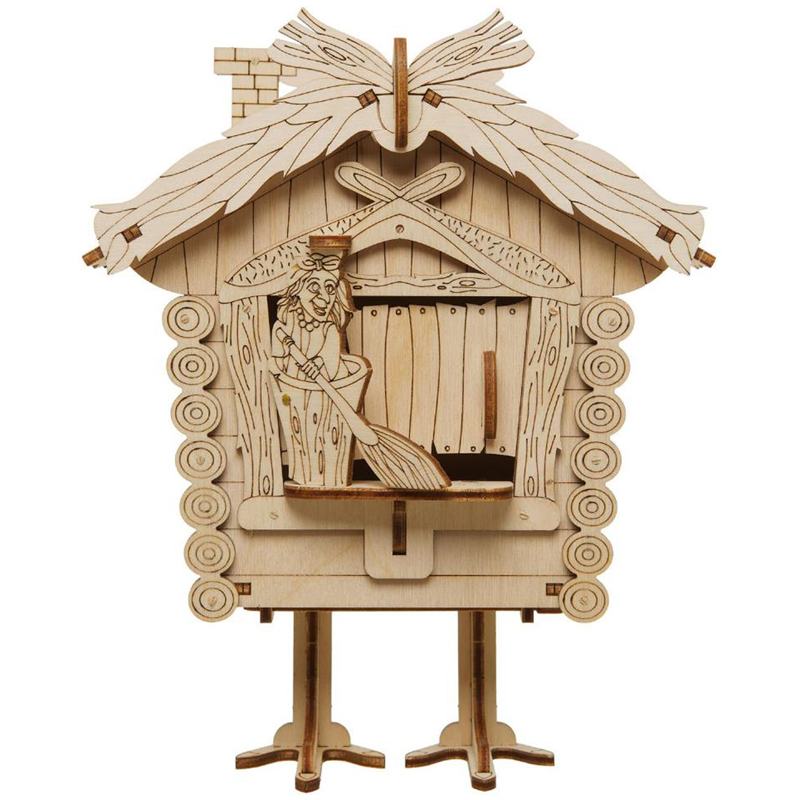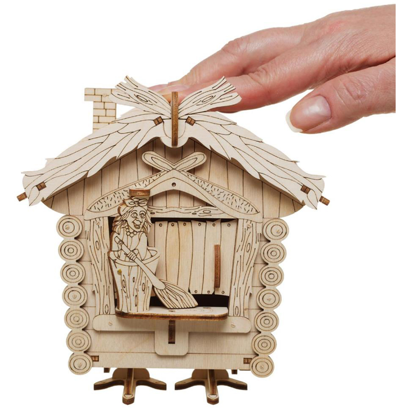 Механическая копилка "Избушка" представляет собой модель, созданную по мотивам детских сказок про Бабу Ягу.<br/>При нажатии на крышу избушки Баба Яга метлой сметает монетку внутрь. Отверстие с фиксатором для извлечения монет находится внизу. Отличный дизайн и игровая составляющая данной модели позволяет не только использовать ее как копилку, но и как антистрессовую игрушку.<br/>Конструктор собирается без клея и специального инструмента. Все элементы легко и прочно соединяются друг с другом. Копилку можно раскрасить любыми красками, проявив при этом свой дизайнерский потенциал.