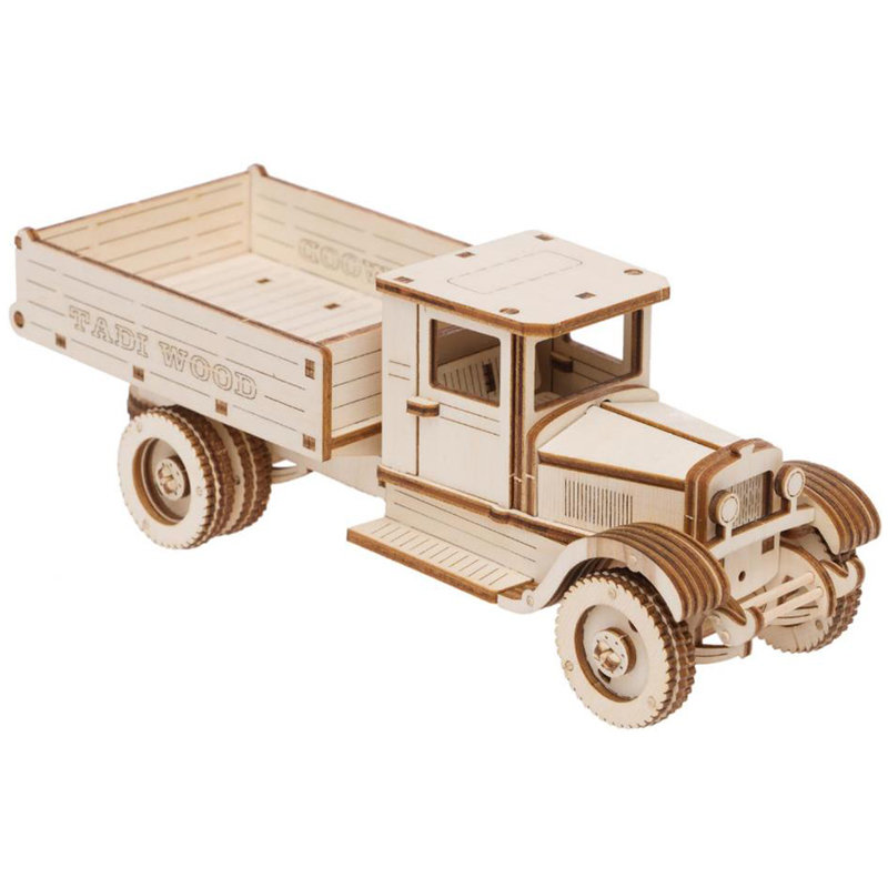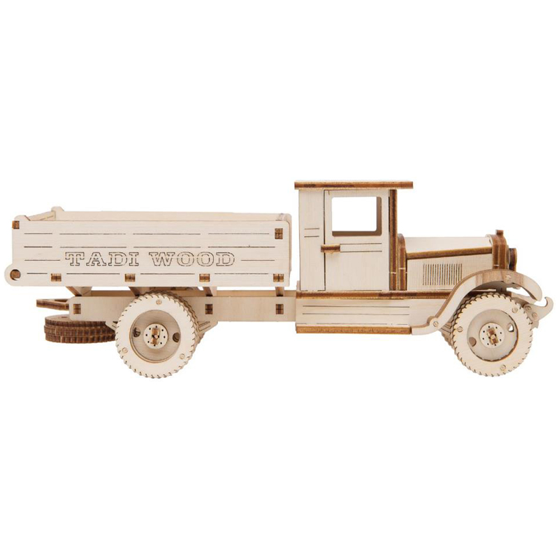 ЗИС-5 легендарный советский грузовой автомобиль грузоподъёмностью 3 т; , один из основных транспортных автомобилей Красной Армии во время Великой Отечественной войны . <br/>Конструктор 3D деревянный, подвижный "ЗИС 5" бежевого цвета марки TADIWOOD.<br/>Конструктор собирается полностью без клея и специального инструмента. Все элементы легко и прочно соединяются друг с другом. Конструктор можно раскрасить любыми красками, фломастерами или карандашами, проявив при этом свой дизайнерский потенциал.<br/>Конструктор выполнен из высококачественной березовой фанеры 1 сорта. Насыщенный запах дерева добавляет приятных эмоций во время сборки.<br/> В комплект входит: все необходимые детали конструктора, подробная инструкция для сборки.<br/> У собранной модели ЗИС 5 вращаются колеса, открывается двери в салон и капот. Машина ездит по любой поверхности.<br/>Сборка модели порадует не только детей, но и взрослых любителей моделизма.<br/>Конструкторы от TADIWOOD помимо развлекающей функции имеют развивающую функцию - это отличная тренировка усидчивости, внимательности, а также развитие глазомера, мелкой моторики рук, пространственного и логического мышления.