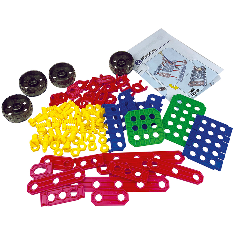 Этот разноцветный пластмассовый конструктор сделан из экологически чистого и ударопрочного материала. Он легок в сборке, так как оснащен системой уникального соединения деталей. В наборе 92 детали и инструкция по сборке 2-х моделей: бульдозер и экскаватор.