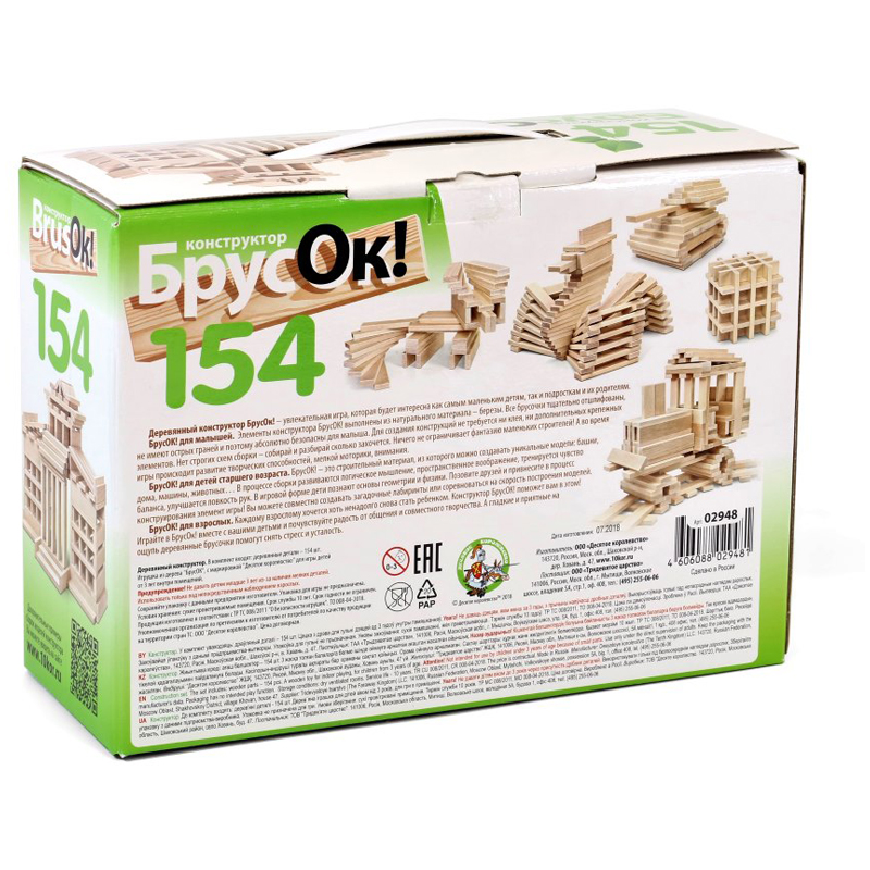 Деревянный конструктор БрусОк! 154 детали - игра, которая будет интересна как самым маленьким детям, подросткам, так их родителям.