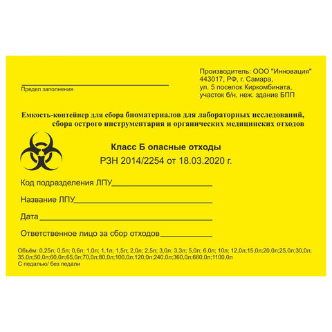 Емкости соответствуют нормам СанПин 2.1.7.2790-10, герметичные, непрокалываемые.