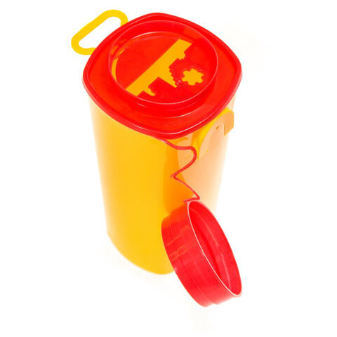 Емкость-контейнер выполнен из прочного полимерного материала. Благодаря наличию крышки с двумя режимами фиксации - закрытие временное/закрытие окончательное - данная емкость является герметичной, что гарантирует безопасность медицинского персонала при ее транспортировке, хранении и утилизации.