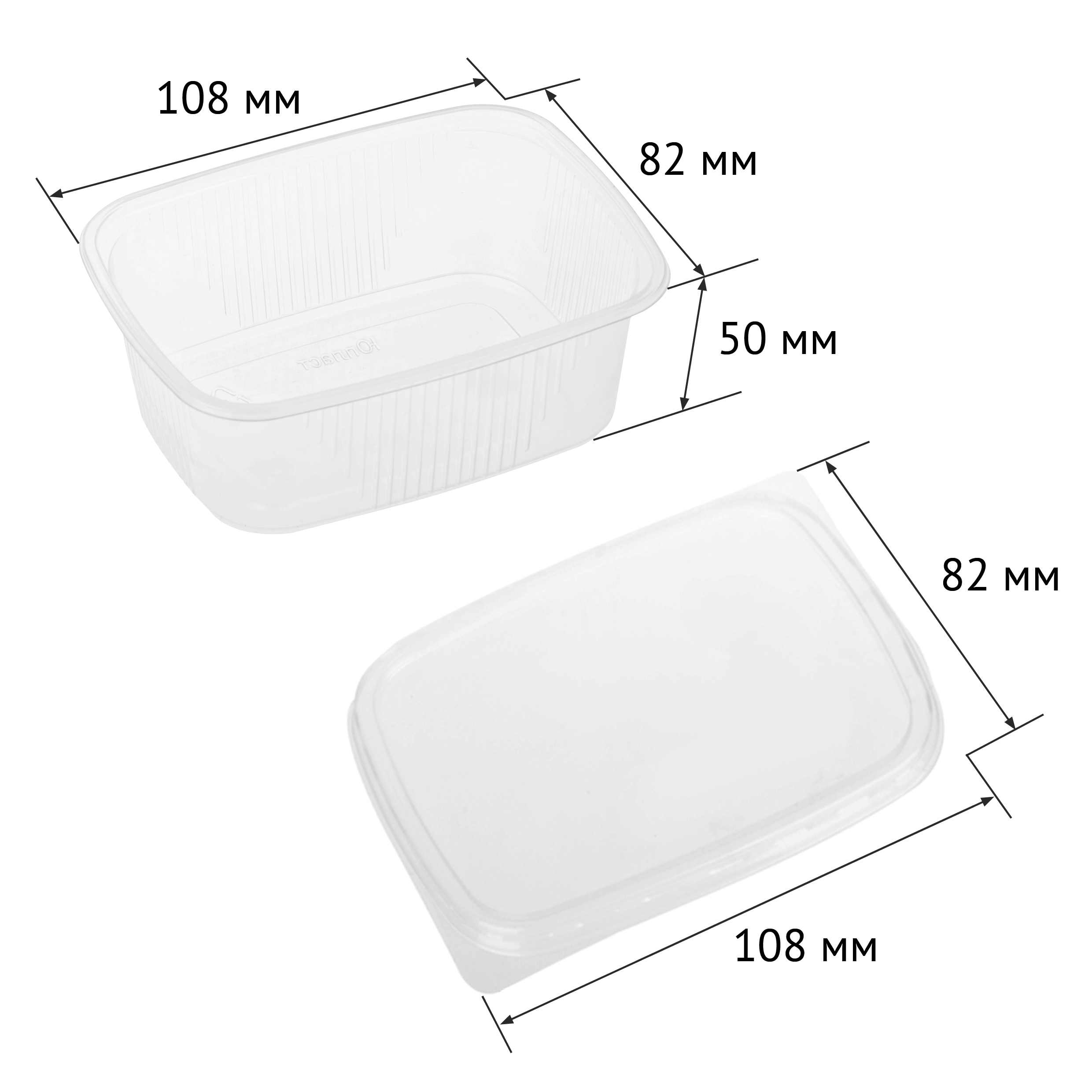 Объем контейнера: 250 мл. Размеры: длина - 108 мм, ширина - 82 мм, высота - 50 мм. Вес - 7,0 гр.