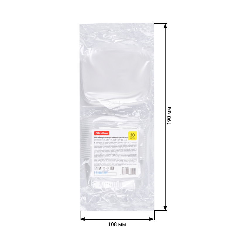 Одноразовые пластиковые контейнеры OfficeClean прямоугольной формы C КРЫШКАМИ в наборе подходят для фасовки салатов, вторых блюд, десертов, ягод. Данный вид контейнеров получил широкое применение в быту, офисных столовых и на предприятиях общественного питания. Контейнеры изготовлены из полипропилена. Предназначены для холодных и горячих пищевых продуктов от +5° С до +70° С. Материал контейнеров безопасен для горячих продуктов и повторного разогрева в СВЧ. <br/>Объем контейнера: 250 мл. Размеры: длина - 108 мм, ширина - 82 мм, высота - 50 мм. Вес - 7,0 гр.<br/>В одноразовых контейнерах OfficeClean Вам всегда будет удобно и комфортно брать с собой готовые блюда на работу и при поездках на природу с коллегами, семьей и друзьями.