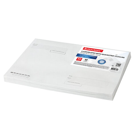 Конверт почтовый BRAUBERG формата С4 предназначен для рассылки документов, журналов и и другой корреспонденции формата А4 без сложения.