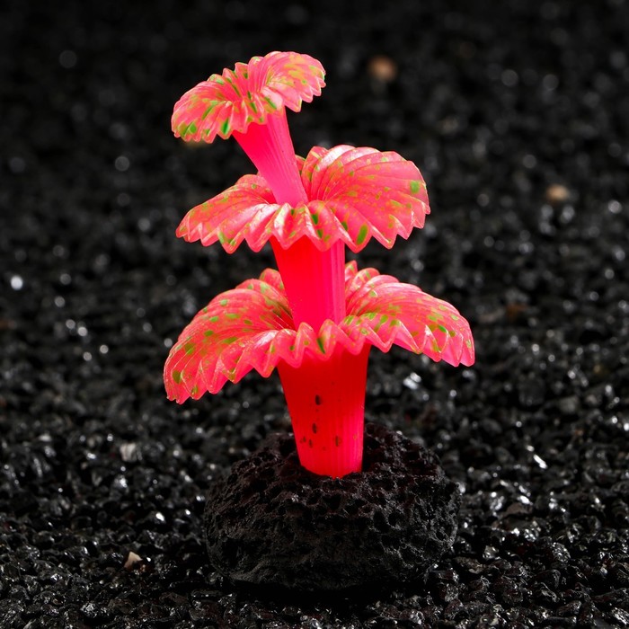 Декор для аквариума "Коралл на платформе" силиконовый, 5 х 5 х 8 см, розовый