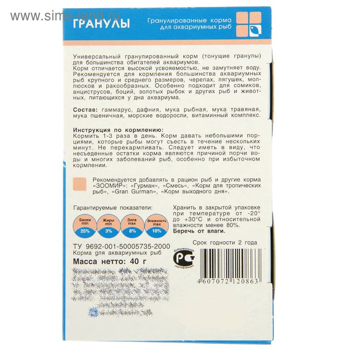 Корм для аквариумных рыб ФИТО М гранулы, 15 гр